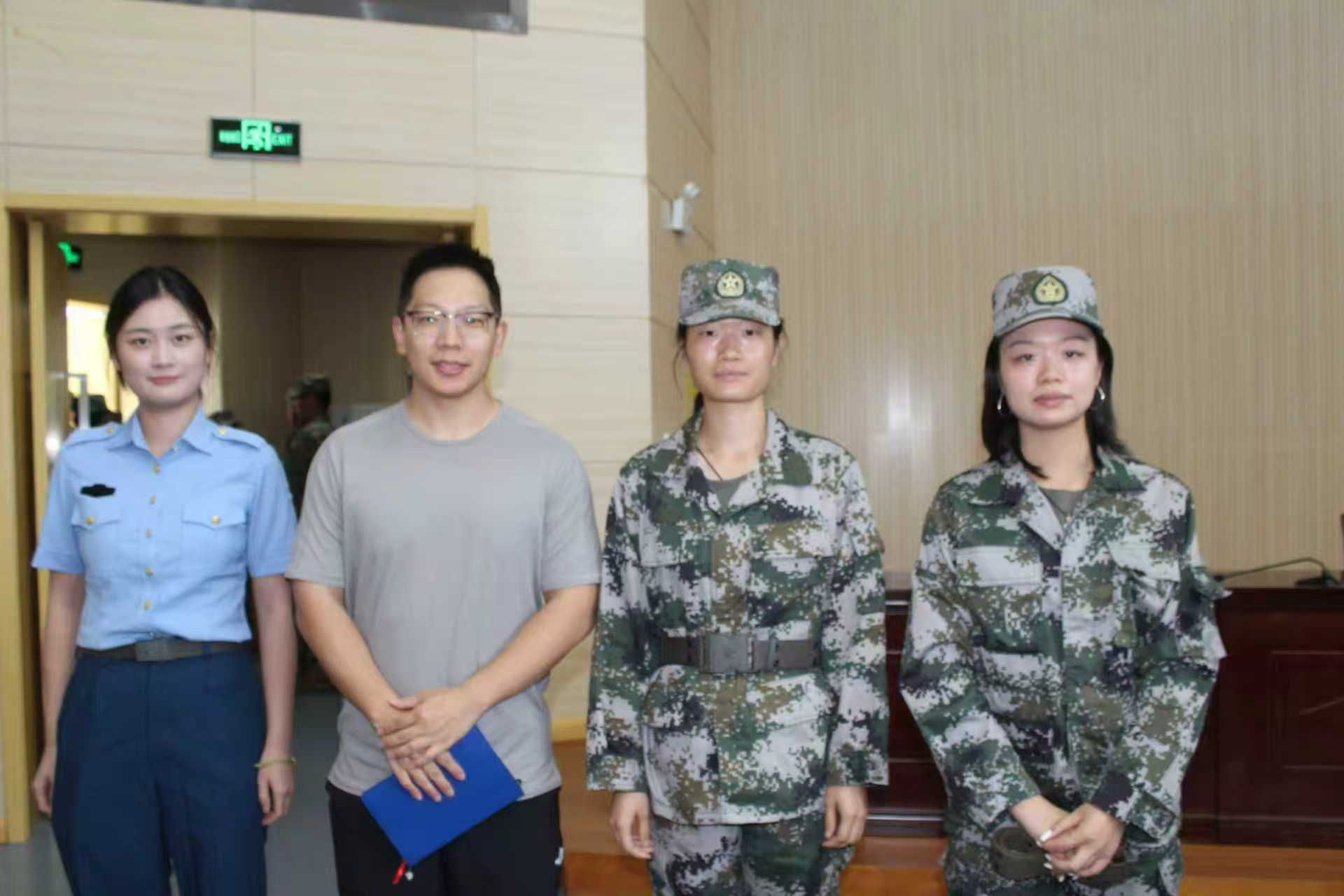 杜雯静是退役在校大学生作为教官代表发言宣誓。