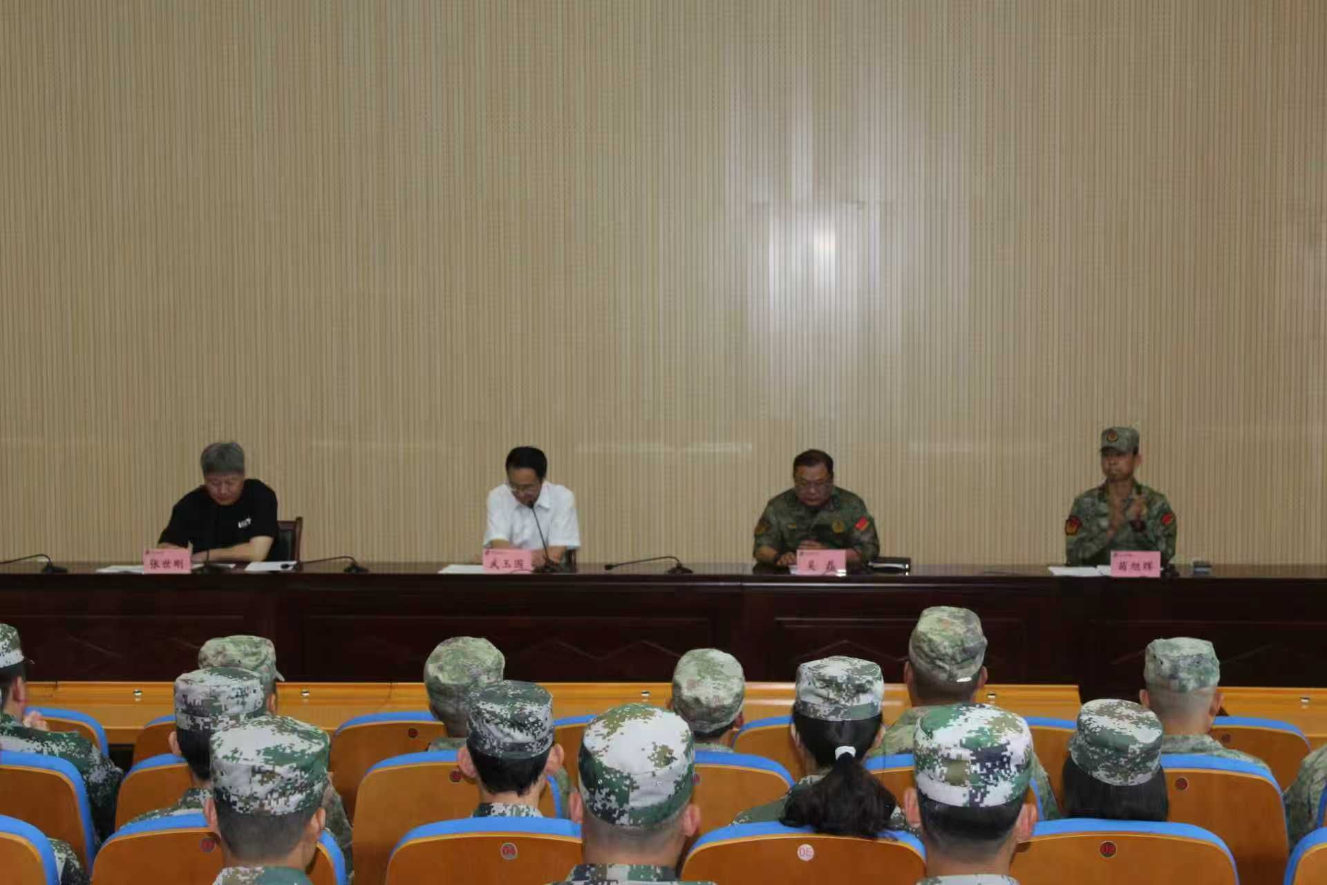副校长武玉国勉励教官们“以情带兵、科学施训,助力新生扣好大学生活第一粒扣子”。