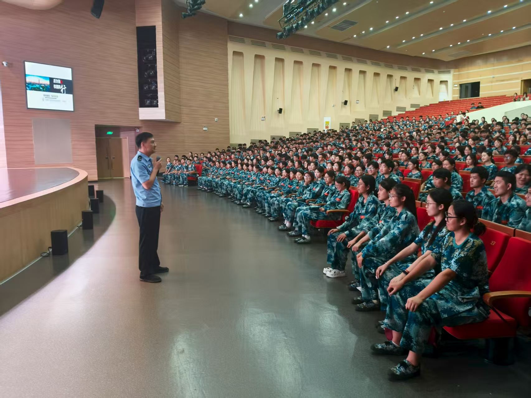 为进一步增强校园防诈骗意识,筑牢校园安全防线。2025年9月11日晚7点,郑州师范学院携手惠济分局反诈大队,共同举办了一场反诈主题的反诈培训活动。保卫处相关负责人及2025级全体新生共同参与此次活动,本次主题培训由保卫处副处长吴磊主持。