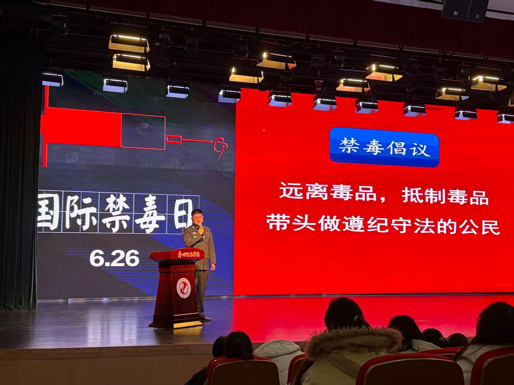 在全民禁毒的社会背景下,毒品侵害青年身心健康的风险仍存,筑牢校园禁毒防线尤为重要。2026 年 3 月 17 日,我校邀请禁毒大队为我校师生开展“同上一堂国家安全教育课”——“面对毒品,坚决说不” 禁毒宣传主题教育活动。