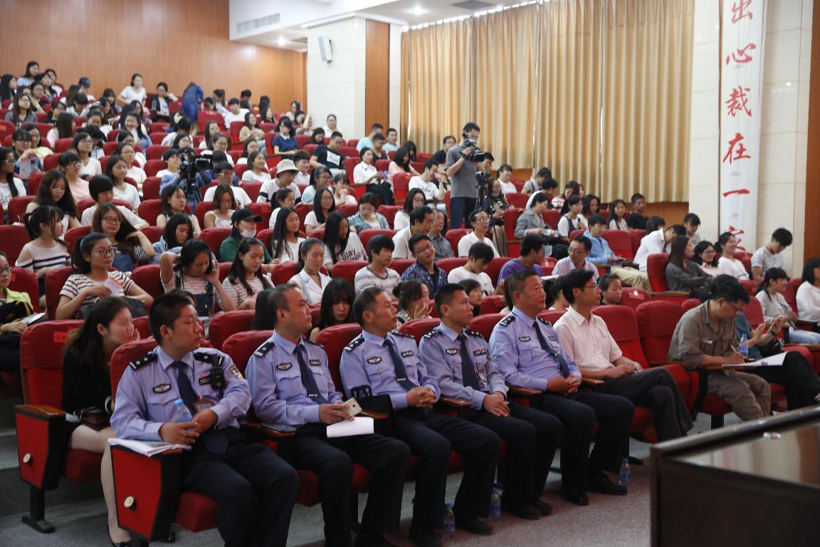 接着,交警五大队教导员程潜、民警贾华东、全国公安机关爱民模范杨华民三位同志分别走上讲台,用质朴的语言和真实的感情,用自己的亲身经历,用身边战友的故事讲述了他们在平凡的工作岗位上保障交通畅通和行人安全的感人事迹,讲述了广大民警在大家与小家之间的艰难取舍中、在交通执法被执法对象误解中,毅然选择责任与坚守,正如杨华民警官在谈到自己的工作时所说:“冬迎风霜,夏顶烈日,累并快乐着。”他们用艰苦的工作、用生命保证了省会郑州交通的畅通,保护着我们每一个交通参与者的安全。炎炎烈日下,他们标准规范的指挥手势、挥汗如雨的忙碌身姿,成为我们这个城市一道亮丽的风景线。宣讲现场气氛热烈,师生们一次次用热情的掌声和欢呼声向交警同志表达自己的敬意。