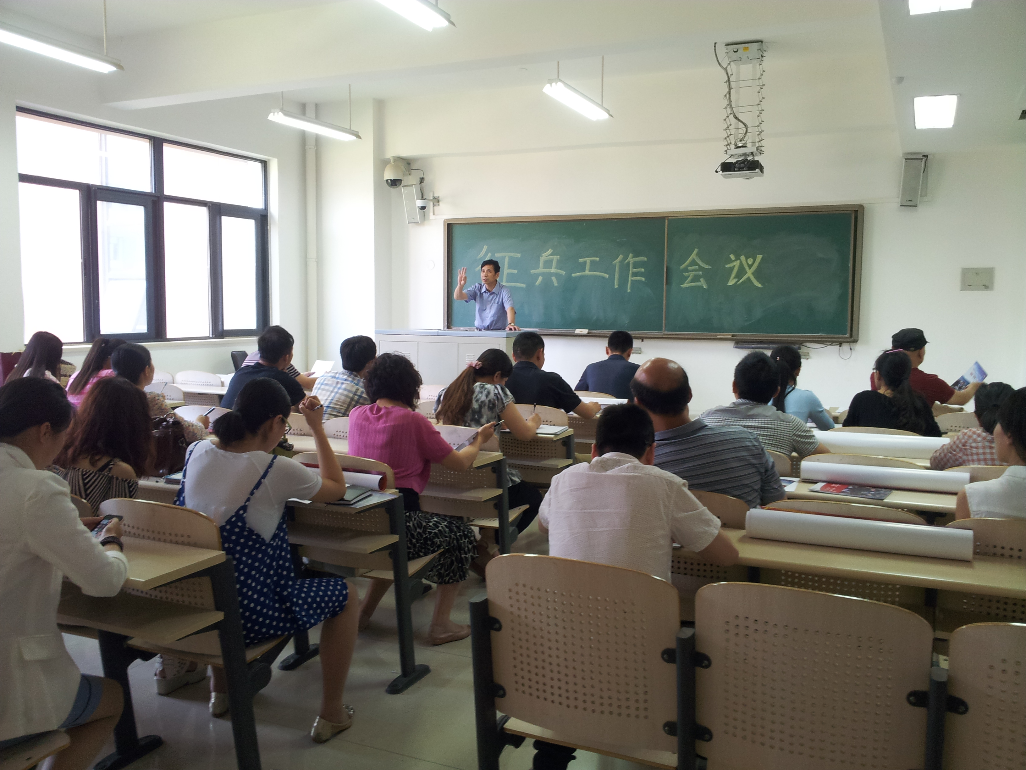 5月26日下午,我校2014年征兵工作会议在公共教学楼A302教室召开。校分管领导张建航、保卫处(武装部)负责人郑斌及各院系具体负责本单位学生征兵工作的老师参加了会议。