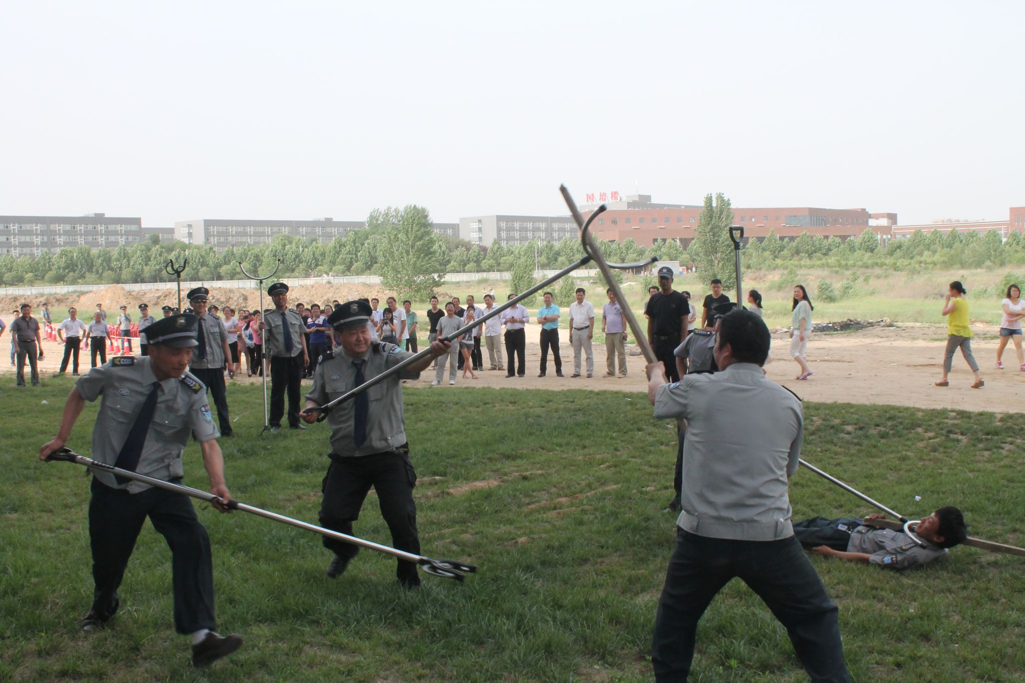 5月27日下午,我校在东校区举行了一次校园安全突发事件应急处置及消防灭火演练。副校长张建航、校内各消防安全重点单位工作人员、部分院(系)师生及保卫处全体人员参加了此次演练。