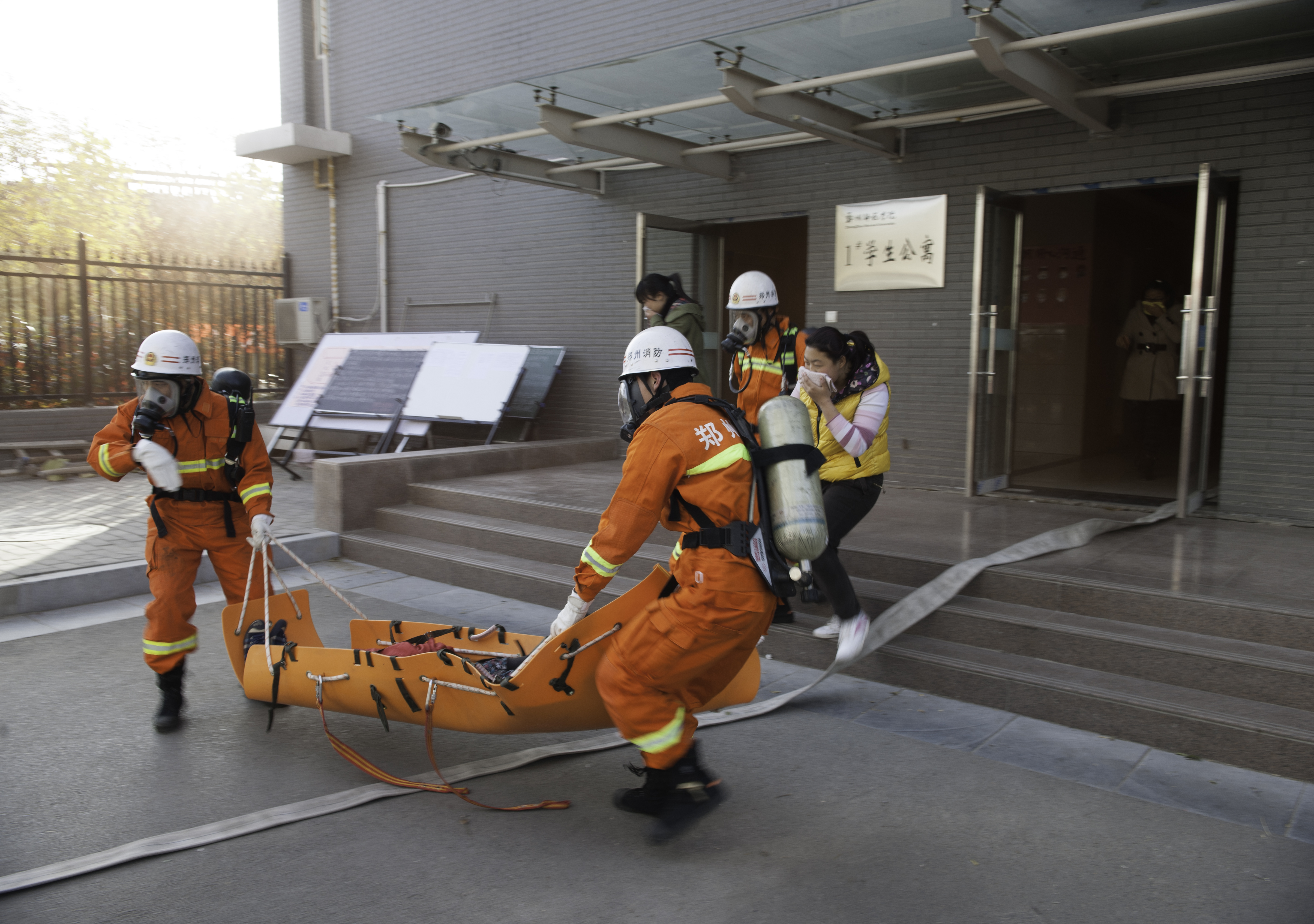11月16日,根据《中华人民共和国消防法》、《高等学校消防安全管理规定》以及省教育厅、市政府的要求,结合学校实际情况举行了消防综合演练活动。学院副校长张建航、惠济消防大队教导员郭晋宝等有关领导参加了演练。这次的消防演练,由我校保卫处牵头,惠济区消防大队主导。惠济区巡防队、学生处、后勤处、宣传部、教务处、校医院等校内外有关部门共同协助,各系部的消防负责人、宿管中心全体人员、理化生实验室管理员、外国语学院、教育科学学院、政治与公共管理系的同学、学生寝室长、治保委员具体参加,总人数达到1200多人。