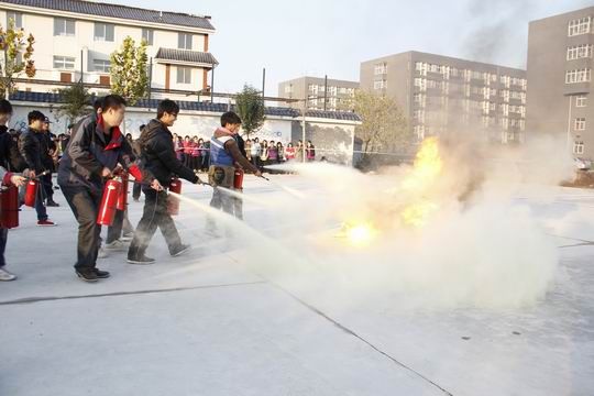 之后,在消防官兵指导下我校师生在操场进行了灭火演练。