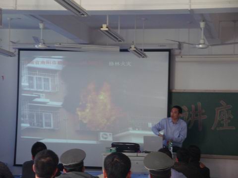 陈教官结合众多实际案例,通过详实的数字和丰富的图片材料,详细、生动地讲述了消防管理、消防基础知识、高校防火知识及火灾预防、初起火灾扑救、火灾现场自救逃生、私家车防火与逃生的基本常识、家庭防火知识(电器、煤气防火及应急处理方法),并直观地讲解了灭火器、防烟罩等消防器材设施的性能、操作方法及维护保养。陈教官还提到,一旦出现火灾要学会冷静应对,掌握基本的消防自救措施。